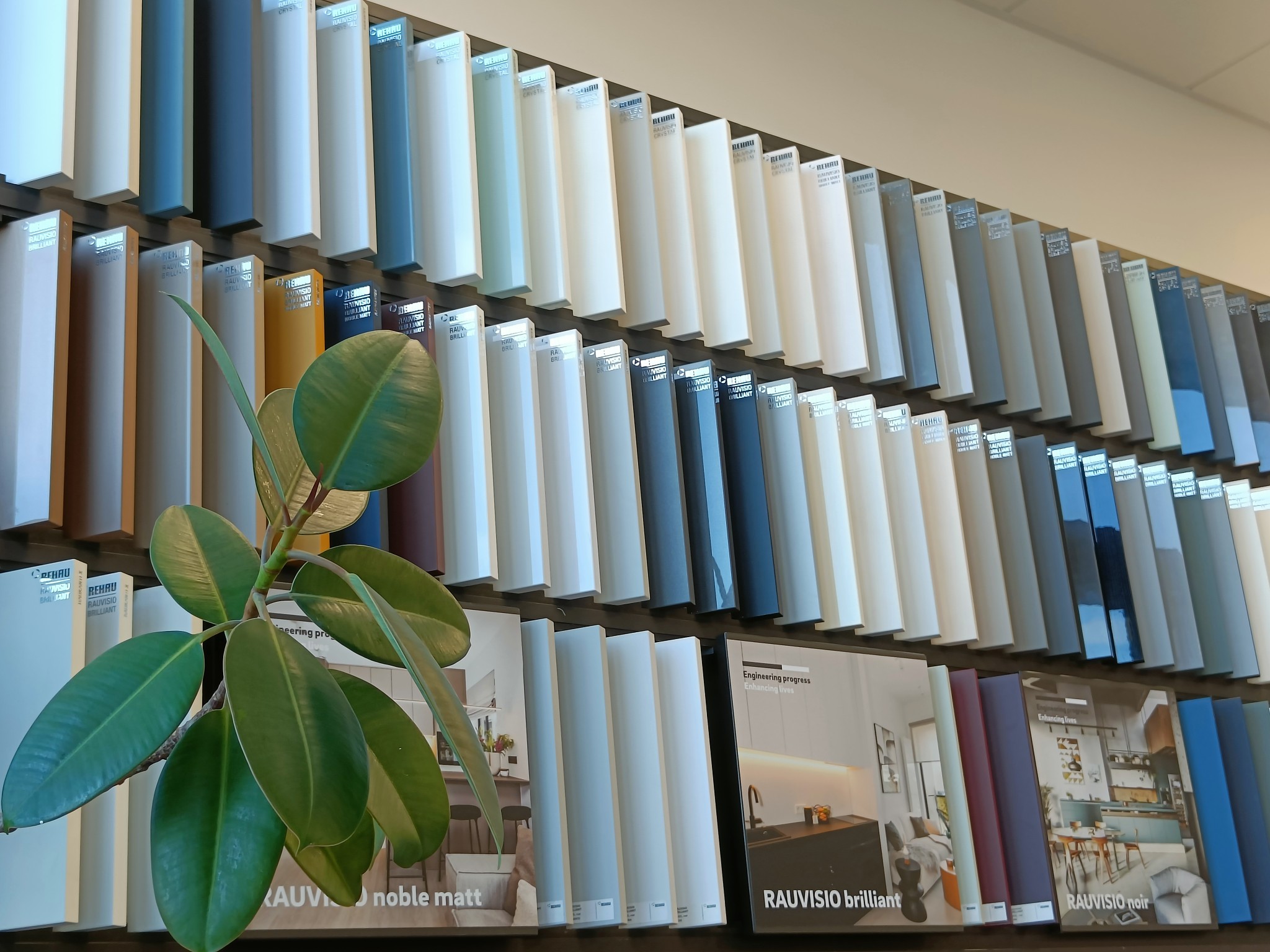Do produkcji frontów akrylowych wykorzystujemy płyty REHAU Rauvisio brilliant oraz Rauvisio crystal, które cechują się wyjątkową głębią połysku, odpornością na zarysowania i łatwością czyszczenia. Zastosowane powierzchnie akrylowe doskonale imitują szkło lub lakier, a jednocześnie są znacznie lżejsze i bardziej odporne na uszkodzenia mechaniczne.